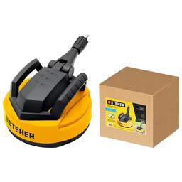 Качественные комплектующие для расширения функциональности моек STEHER Преимущества Насадка для очистки плоских поверхностей (площадок, стен) Большой диаметр обеспечивает увеличенную ширину обработки и помогает выполнять работу быстрее Подача воды под давлением с вращением для эффективной очистки Быстросъемное соединение Использование Для очистки садовых дорожек, бетонных и кирпичных стен, тротуарной плитки и других плоских поверхностей