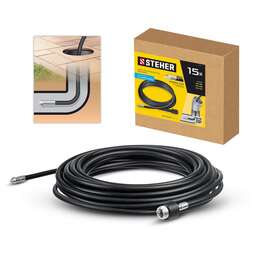 Качественные комплектующие для расширения функциональности моек STEHER Преимущества Длина 15 метров позволяет далеко продвигаться по загибам труб Надежное резьбовое соединение Использование Для прочистки труб (сливных, дождевых, канализационных) от загрязнений путем подачи струй высокого давления