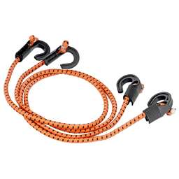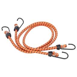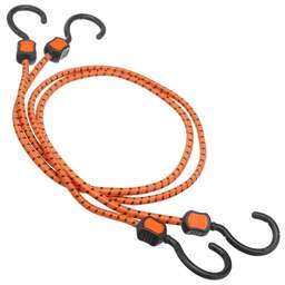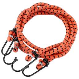 Усиленные багажные резинки Stels 54360, 2 шт. длиной по 600 мм, используются для перевозки грузов. С их помощью можно закрепить различные предметы в прицепе или багажнике на крыше легковой автомашины. Жгуты толщиной 8 мм изготовлены из резины с добавлением латекса, поэтому обладают высокой эластичностью и прочностью. Будут полезны автовладельцам. Преимущества Надежная фиксация груза — жгуты выдерживают нагрузку до 40 кг, крюки из углеродистой стали крепко удерживают натянутые резинки. Защита кузова автомобиля от повреждений — на концах крюков имеются специальные колпачки. Яркий цвет — оранжевые резинки легко найти среди автомобильных принадлежностей.