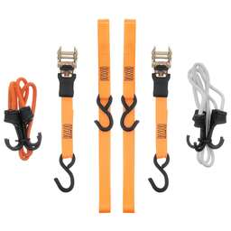 Набор стяжек и резинок Stels 54403 используется для фиксации грузов и будет полезен в автопутешествии. В комплекте ремни с храповыми механизмами, а также резинки разной длины с крюками. Разрывная нагрузка ремней составляет 680 кг, а эластичных стяжек — 50 кг, поэтому они надежно фиксируют предметы различных габаритов, предотвращая их смещение во время перевозки. Преимущества Износостойкость — ремни изготовлены из прочного полиэстера, а эластичные стяжки — из высококачественной резины. Надежность — храповые механизмы обеспечивают быстрое стягивание ременных лент и крепко удерживают их в натянутом положении. Полная сохранность груза — прочные крюки не разгибаются даже при высоких нагрузках.