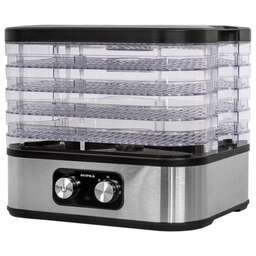 Идеально подходит для приготовления фруктов, овощей, вяленого мяса, закусок, лакомств для животных, сухариков, трав, цветов. Мощность: 280 Вт. Механическое управление. 5 прочных пластиковых прозрачных поддонов. 1 силиконовая сетка. Возможность контроли