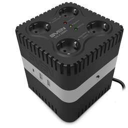 Стабилизатор напряжения релейного типа, 320Вт, 4 розетки, входное напряжение, В ~180 - 285±3 %, выходное напряжение, В ~230 (-14/+10%), ток срабатывания защиты (предохранитель), А - 5, перегрузочная способность, % кратковременная: до 150, долговременная: до 125, защита от повышенного/пониженного напряжения сети, от высоковольтных импульсов, от короткого замыкания и перегрузки, встроенная тепловая защита автотрансформатора, размеры изделия, мм - 230 х120х102.