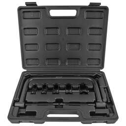 <p>Предназначены для производства работ по обслуживанию клапанного механизма ГРМ двигателей внутреннего сгорания.</p> <p>Комплектация:</p> <p>Щипцы для демонтажа маслосъемных колпачков &ndash; 270 мм.</p> <p>Рукоятка установочная &ndash; 150 мм.</p> <p>Оправки для глубоких уплотнений 2 шт.: 10.8 &ndash; 14.8 мм.</p> <p>Оправки для уплотнений 7 шт.: 5, 5.5, 6, 6.5, 7, 8 мм., и 3/8DR.</p> <p>Пластиковый кейс.</p>
