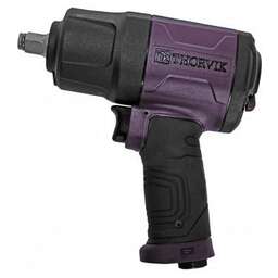 <p>Пневматический ударный гайковерт с лекгосплавным, металлическим корпусом ударного механизма, покрытым специальной, ударопрочной эмалью, нанесенной электростатическим способом. Корпус гайковерта выполнен из композитных материалов, который обеспечивает малый вес изделия, что в комплексе с резинополимерной накладкой рукоятки снижает вибрационные воздействия на руку оператора. Гайковерт применяется для обслуживания осложненных и нагруженных соединений с размерами резьбы до М16 и максимальным моментом затяжки 1000 Нм. Во время производства работ с применением пневматических ударных гайковертов, рекомендуется использование перчаток с виброгасящими накладками и средств защиты органов зрения и слуха.</p> <p>Технические характеристики:</p> <p>Присоединительный квадрат: 1/2"DR</p> <p>Частота свободного вращения: 8500 об/мин</p> <p>Максимальный крутящий момент: 1000 Нм</p> <p>Рабочий крутящий момент: 700 Нм</p> <p>Расход воздуха средний: 142 л/мин</p> <p>Диаметр воздушного шланга: 10 мм</p> <p>Штуцер подключения: 1/4"DR</p> <p>Габаритные размеры (ДхВхШ) 179х132х65 мм.</p> <p>Механизм привода: Двойной молот</p> <p>Масса изделия : 1.2 кг.</p> <p>Область применения:</p> <p>Пневматические гайковерты THORVIK применяются для проведения слесарно-монтажных работ и работ, связанных с обслуживанием резьбовых соединений в м…