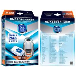 TOP HOUSE THN 2515 Е Сверхпрочные нетканые пылесборники с антибактериальной обработкой, 8 шт. для пылесосов ELECTROLUX: Airmax, Bolido, Clario, Clario-2, Classic Silence, Ergo Classic, Ergo Space, Essensio, Equipt, Excellio, Oxy3 system, Oxygen, Power Force, Silent Performer, Smartvac, JetMaxx, Ultra Ona, Ultra Silencer, Viva Control, Viva Quick Stop, MAXImus и тд. PHILIPS: Cityline, Expression, Impact, Impact Plus, Jewel, Mobilo, Specialist, Universe, Studio Power, Power Life, SmallStar, SilentStar, Home Hero, EasyLife, Performer, Performer Active, Performer Expert, Performer Pro. Соответствуют оригинальным типам пылесборников: s-bag, E 15, E 18, E 40/41, E 59, E 200 – 203 B, E 205/206 B, E 210 В, E 82, PH 86/96, VO 75. Изготовлены из многослойного нетканого материала Micro-Fleece на одном из лучших заводов в Германии - Aichner-Filter GmbH. Обеспечивают уровень фильтрации воздуха в 99,98%.