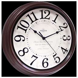 Часы настенные пластиковые, модель 88884872, диаметр 310 мм, стекло минеральное, пластиковый обод, цвет-коричневый. Циферблат на стекле.
