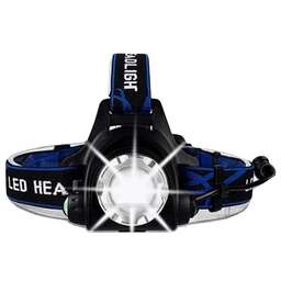 Тип: Налобный фонарь. Источник света: светодиод. Количество ламп: 1. Суммарная мощность источников света: 10. Тип аккумулятора: 18650. Фокусировка светового луча: есть. Ударопрочный корпус: есть. Вес (с эл.питания): 0.31. Количество режимов работы: 3. Режимы работы: 100%, 50%, стробоскоп. Максимальная дальность направленного света: 1000. Влагозащищенная конструкция: есть. Угол наклона: изменяемый. Крепление на руль велосипеда: есть. Питание: от аккумулятора. Продолжительность работы от аккумулятора: 6. Класс энергоэффективности: A. Габариты упаковки (ед) ДхШхВ: 0.116x0.11x0.1. Вес упаковки (ед): 0.31. Страна производства: Китай. Световой поток (lm): 300. Тип крепления: на клипсе. Тип управления: механическое. Цветовая температура: 5000. Материал основания/арматуры: металл/резина. Тип лампы: светодиодная. Гарантия: 12 мес.. Размер (ДхВхШ): 115 х 90 х 109 мм. Цвет: черный / синий. Особенности: ударопрочный корпус, влагозащищенность. Источник света: светодиод, 10 Вт, дальность 1000 м. Режимов работы: 3. Питание: от аккумулятора, 18650. Продолжительность работы: 6 ч
