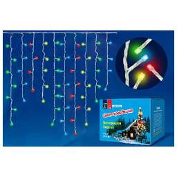 ULD-E2405-240/DTK MULTI IP44 METEOR Занавес светодиодный фигурный «Падающие звезды», соединяемый. 8 подвесов. 240 светодиодов. Размер 2,4х0,5м. Цвет свечения разноцветный. IP44. Провод прозрачный. Упаковка картон.