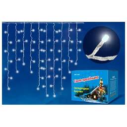 ULD-E2405-240/DTK BLUE IP44 METEOR Занавес светодиодный фигурный «Падающие звезды», соединяемый. 8 подвесов. 240 светодиодов. Размер 2,4х0,5м. Цвет свечения синий. IP44. Провод прозрачный. Упаковка картон.