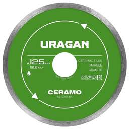 URAGAN CERAMO 125 мм, диск алмазный отрезной сплошной (36707-125)