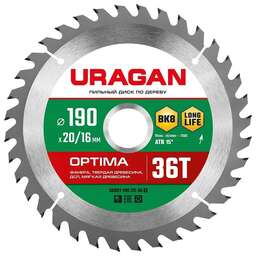 URAGAN Диск пильный по дер. Optima (36801-190-20-36_Z01) d=190мм d(посад.)=20мм (циркулярные пилы)