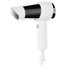 Переносной фен с безопасной кнопкой включения, 1800 Вт Рекомендован для использования: необщественные места – ванные комнаты и спальни в отелях, пансионатах, хостелах и частных домах, каюты судов. Технические характеристики: Мощность 1800 Вт Безопасный волнистый нагревательный элемент Ползунковый переключатель: 2 скоростных режима, 3 температурных режима Режим подачи холодного воздуха Безопасный включатель (подача воздуха только при нажатии) Насадка-концентратор Спиральный кабель (0,7 - 1,5 м) Подключение через вилку на шнуре Петля для подвешивания Цвет: черный