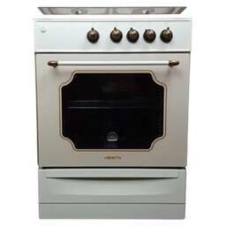 Габариты (ШхГхВ) см 60х60х85: Цвет бежевый. Дизайн Ретро: Горелки стола: Газовые – 4 шт. Мощность горелок рабочего стола: Горелка передняя левая/правая – 2,0/2,4 кВт. Горелка задняя левая/правая – 2,0/1,0 кВт. -Мощность горелки духовки – 2,5 кВт. -Объем духовки в литрах: 65 л. Верхний/нижний нагреватель духовки – газ. Газ-контроль духовки. Решетка рабочего стола – чугун. Крышка рабочего стола – стекло. Термометр духовки. Кнопка электророзжига горелок стола. Электрическая подсветка духовки. Противень – 2 шт.