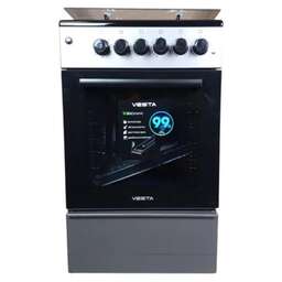 Габариты ШхВхГ, см: 50х85х57; Горелки стола: Газовые – 4 шт. Мощность горелок рабочего стола: Горелка передняя левая/правая – 2,0/2,4 кВт. Горелка задняя левая/правая – 2,0/1,0 кВт. Электрический духовой шкаф. Объем духовки в литрах: 52.8 л. Верхний/нижний нагреватель духовки – тен. Решетка рабочего стола – сталь. Крышка рабочего стола – стекло. Термометр духовки. Кнопка электророзжига горелок стола. Электрическая подсветка духовки. Выдвижной ящик. Противень – 2 шт.