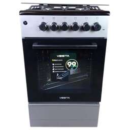 Габариты: Высота 85 см, Глубина 60 см, Ширина 50 см. Цвет сeрый. Тип варочной поверхности комбинированная. Тип управления механическое. Переключатели поворотные. Варочная панель; Общее количество конфорок 4. Число электрических конфорок 1, Число газовых конфорок 3. Характеристики конфорок: Конфорки газовая, электрическая. Материал рабочей поверхности эмалированная сталь. Тип духовки электрическая. объем духовки 55 л, 3 режима духовки: Верхний нагрев, верхний+ нижний нагрев, нижний нагрев, мощность духовки: верхний ТЭН 1000 Вт, нижний 900 Вт. Есть стальные решетки, задняя крышка, материал задней крышки стекло, подсветка духовки.
