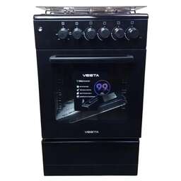 Габариты и вес: Ширина плиты, см 50, Глубина плиты, см 57, Высота, см 85, Вес кг 35. Горелки стола: Газовые – 3 шт. Электр.–1 шт. Мощность горелок рабочего стола: -Горелка передняя левая/правая – 2,0/2,4 кВт. Горелка задняя левая, электрическая – 1,5 кВт. Горелка задняя правая – 1,0 кВт. Решетка рабочего стола – сталь. Крышка рабочего стола – стекло. Верхний нагреватель духовки – ТЭН. Нижний нагреватель духовки – ТЭН. Электророзжиг при помощи кнопки. Электрическая подсветка духовки. Термостат, Индикатор работы электроконфорок. Индикатор работы ТЭНа духовки. Противень – 2 шт. Цвет Черный.