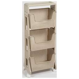 Материал: полипропилен. Цвет: латте. Количество полок: 3 шт. Наличие колес: есть. Ширина: 395 мм. Высота: 943 мм. Глубина: 260 мм.
