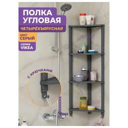 Полка VIKEA угловая подвесная 4-х ярусная (серый) Тип этажерка Установка навесная Количество уровней 4 Материал пластик Цвет серый Ширина 27 см Глубина 35 см Высота 10 см Угловая Да