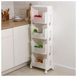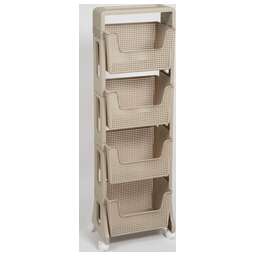 Материал: полипропилен. Цвет: латте. Количество полок: 4 шт. Наличие колес: есть. Ширина: 395 мм. Высота: 1228 мм. Глубина: 260 мм.