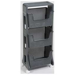 Материал: полипропилен. Цвет: серый. Количество полок: 3 шт. Наличие колес: есть. Ширина: 395 мм. Высота: 943 мм. Глубина: 260 мм.