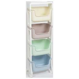 Материал: полипропилен. Цвет: ассорти. Количество полок: 4 шт. Наличие колес: есть. Ширина: 395 мм. Высота: 1228 мм. Глубина: 260 мм.