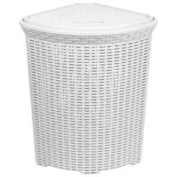 Емкость для накопления грязного белья перед стиркой. В объеме 60л комфортна для использования в семье на несколько человек. Форма корзины позволяет разместить ее в углу помещения для оптимального использования свободного пространства и экономии места. Крышка закроет содержимое от взглядов и послужит препятствием для распространения возможных посторонних запахов. Текстура с имитацией натурального плетения «Ротанг» привнесет уют в ваш интерьер и придаст индивидуальность.