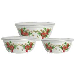 Набор мисок, 6 предм. (3 МИСКИ С КРЫШКАМИ: 0,85 Л (d16 см), 1,4Л (d18 см), 2,6 Л (d20 см) с внутренним эмалированным покрытием), эмалированная сталь, внешнее покрытие - эмаль с рисунком.