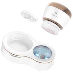 Элементы питания типа АА 2 шт. (в комплект не входят) 2 режима работы - бережное очищение - глубокое очищение 4 насадки: - насадка-спонж для нанесения кремов и тональной основы - ультрамягкая насадка-щетка для чувствительной кожи - насадка-щетка для нормальной и смешанной кожи - насадка-щетка для глубокого очищения пор Защита от водяных брызг и струй с любого направления Подставка для прибора в комплекте
