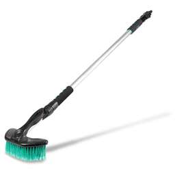 Телескопическая щетка для мытья автомобиля. Оснащена насадкой для подключения к шлангу и краном для подачи воды. Мягкая, распушенная щетина для деликатного мытья автомобиля. Ширина рабочей поверхности: 26 см Длина щетки: 100-170 см