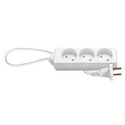 Удлинитель бытовой, без заземления, количество гнезд - 3, подключаемая мощность : 2200 Вт, степень защиты: IP20, тип провода и сечение: 2Gх0,75, цвет: белый, длина: 1,5 м.