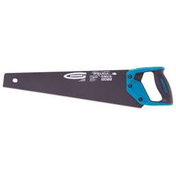Ножовка по дереву Gross PIRANHA 24103 с полотном длиной 450 мм, калеными зубьями с 3D-заточкой и шагом 11-12 TPI, 2-компонентной рукояткой, предназначена для распиловки заготовок из древесины, ДСП, ДВП, МДФ и ламината, а также из пластических материалов, таких как пенополистирол и полиуретан. Может производить продольный и поперечный распил. Мелкие зубья с шагом 11-12 TPI позволяют выполнять точный и чистый рез. Ножовка обладает высокой производительностью благодаря трехгранной заточке зубьев. Инструмент используется в столярном деле.ПреимуществаНадежность — полотно изготовлено из высококачественной японской стали SK-5, а рукоятка — из ударопрочного ABS-пластика.Эффективная работа — зубья, закаленные токами высокой частоты, долго держат заточку.Прочность — закалка зубьев на 2/3 высоты уменьшает вероятность их слома при обработке древесины твердых пород.Коррозионная стойкость — на полотно нанесено защитное полимерное покрытие.Комфорт во время работы — благодаря эргономичной форме и рифленой поверхности рукоятка удобно ложится в руку и не скользит в ладони.Гарантированное качество — инструмент изготовлен на тайваньском заводе с соблюдением всех технологических требований.