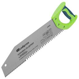 Ножовка по дереву Сибртех «Зубец» 23820 с полотном длиной 400 м, калеными зубьями с шагом 10 мм и 2D-заточкой, 2-компонентной рукояткой, используется для продольного и поперечного пиления древесины и ДСП. Рабочая кромка с шагом зубьев 10 мм обеспечивает быстрый рез. Зубья имеют 2D-заточку, благодаря чему ножовкой можно пилить в направлении как от себя, так и на себя. Возможна заточка режущей части. Ножовка применяется для выполнения плотницких работ, пригодится также и в быту.ПреимуществаПолотно изготовлено из легированной стали 65Mn, чем обусловлена его прочность и устойчивость к деформациям.Зубья ножовки закалены, что обеспечивает ей высокий ресурс работоспособности.Поверхность полотна покрыта лаком для защиты от коррозии.Рукоятка закреплена на полотне 3 винтами, поэтому не соскочит во время работы.Материал двухкомпонентной рукоятки — ударопрочный ABS-пластик, обеспечивающий надежность инструмента.Эргономичная рукоятка удобно лежит в руке, что повышает комфортность работы.