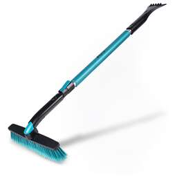 Щетка - сметка с распушенной щетиной для очистки снега, с удобной изогнутой ручкой для более тщательной и быстрой очистки, с мягким спонжем для комфорта рук и со скребком с зубьями для удаления обледенения. Длина щетки: 90 см