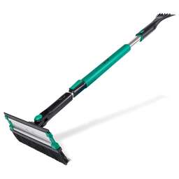 Телескопическая щетка для полноценной очистки автомобиля от осадков. Имеет упругую распушенную щетину с поворотным механизмом на 90° для очистки снега, скребок с зубьями для удаления льда и водосгон для удаления капель воды с со стекла. Удобная мягкая ручка из материала Спонж для комфортного использования. Голова и скребок снимаются для удобства очистки труднодоступных мест. Длина щетки: 89-126 см Длина ручки без насадок 59,5см - 94см