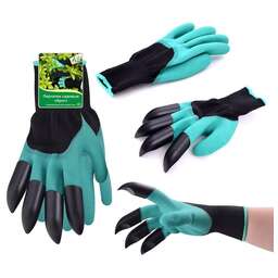 Перчатки с пластиковыми наконечниками в форме когтей — уникальное изобретение для садоводов и огородников. Такие перчатки смогут заменить несколько садовых инструментов. «Когти» помогают рыхлить землю, делать углубления для посадки семян и саженцев, окучивать небольшие растения. Перчатки водонепроницаемы, так как покрыты резиной, поэтому ваши руки и ногти останутся в чистоте. Состав: синтетические волокна (полиэстер), резина, пластмасса (полипропилен).