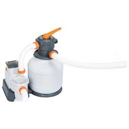 BESTWAY Фильтр-насос для бассейнов песочный 220-240V, 8327 л/ч, 58499 • выше степень очистки воды от механических примесей, чем у насосов с бумажными фильтрующими элементами; • фильтрующий элемент (кварцевый песок) требует редкой замены – один раз в 4-5 лет; • мощный насос (производительность 8327 л/ч); • коррозиестойкий резервуар для фильтрующего элемента; • переходники на 32мм • Корпус из высококачественного материала • 6-ти позиционный кран • Соединение на хомут • Не требует постоянного технического обслуживания • Отлично подходит к большинству моделей BestWay и Intex диаметром от 457 см • Инструкция по использованию Технические характеристики: Производительность насоса: 8327 л/ч Производительность системы: 6813 л/ч Рекомендуется для бассейнов объёмом воды: от 1100 до 54500 литров Необходимое кол-во кварцевого песка: 35 кг (песок приобретается отдельно) Сеть: 220В Вес: 14.5 кг Инструкция на русском языке