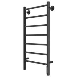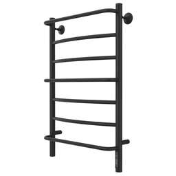 Полотенцесушитель электрический чёрный, лесенка, из алюминия, тэн из углеродного волокна. Гармонично впишется в современный интерьер и поможет поддержать комфортную атмосферу в ванной комнате, работает вне зависимости от отопительного сезона, и его можно разместить в любом месте ванной или даже на стене в комнате. Сверху нанесено чёрное полимерное покрытие, устойчивое к высоким температурам. Благодаря продуманному расположению труб можно размещать объемный текстиль, сократив время просушки. Установка и ремонт не требуют работы сантехников. Габаритные размеры: высота 600 мм, ширина 500 мм, глубина 90 мм. 6 плоских перекладин, с сухим ТЭНом, 80 W, 220-230 V, 50-60 Гц, t - 55°С, IP 44. Комплект: полотенцесушитель, крепёж, провод с евровилкой для подключения. Вес - 3,800 кг, объём - 0,03800 м3.