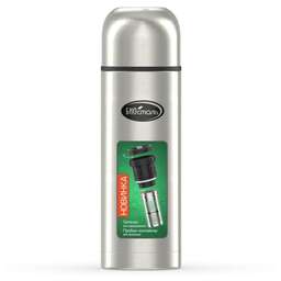 Термос с ситечком для заваривания и пробкой-контейнером для хранения. Пробка с функцией «термоконтроль» позволяет наливать напитки без полного откручивания пробки под любым углом. Термос комплектуется двумя чашками: крышкой-чашкой на 110 мл и дополнительной пластиковой чашкой на 160 мл. Термос и ситечко изготовлены из высококачественной нержавеющей стали 18/8 (AISI 304). Корпус термоса покрыт защитным бесцветным лаком.