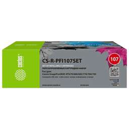 Бренд: CACTUS Назначение: для струйных принтеров/МФУ Производитель печатающих устройств: CANON Модель: CS-R-PFI107SET PartNumber/Артикул Производителя: CS-R-PFI107SET Совместимость: imageProGRAF iPF670/680/685/770/780/785 Набор: ДА Тип упаковки: упаковка 5 шт. Чип: без чипа Габариты упаковки (ед) ДхШхВ: 0.28x0.2x0.085 м Вес упаковки (ед): 0.967 кг Цвет: черный Цвет2: черный матовый Цвет3: голубой Цвет4: желтый Цвет5: пурпурный Цвет картриджа: черный/черный матовый/голубой/желтый/пурпурный Особенности: Обратите внимание: увеличенный размер картриджей требует их установки с открытой крышкой принтера. Необходимо заблокировать датчик закрытия крышки подручными средствами. Дозаправка производится вне принтера. Чернила необходимо приобрести отдельно.