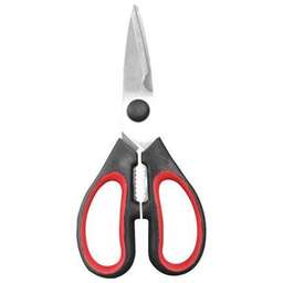 Длина ножниц: 22,8 см Удобный пластиковый чехол в комплекте Толщина стали: 2,8 мм Материалы: лезвие — нержавеющая сталь, ручка и чехол — пластик Ножницы предназначены для: - разделки птицы; - вскрытия картонных и полимерных упаковок; - чистки рыбы, срезания плавников (съемные лезвия); - в качестве ножа для овощей (съемные лезвия); - в качестве щипцов для колки орехов; - как консервный нож; - как открывашку для бутылок; - как овощечистку (съемные лезвия). Упаковка: европодвес
