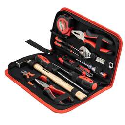 Набор Matrix 13562 из 12 предметов будет полезен как частному мастеру, так и профессионалу для проведения слесарно-монтажных работ. Он включает отвертки для монтажа/демонтажа резьбовых соединений, в том числе и мелких, разводной ключ для болтов и гаек, нож для резки плотных материалов, рулетку для проведения замеров, молоток, кусачки и тестер для проверки напряжения в сети. Преимущества Прочность и износостойкость — все детали набора изготовлены из инструментальной стали, рабочие части закалены до необходимой твердости. Безопасность — на длинногубцах и пассатижах имеются ограничительные упоры, благодаря которым пальцы не соскальзывают на рабочую часть. Магнитные свойства — наконечники отверток надежно фиксируются в головке крепежа. Сегментированное лезвие ножа — затупившиеся части легко отламываются, поэтому инструмент долго сохраняет режущую способность. Фиксация рулетки на запястье — в корпус встроен небольшой ремешок. Комфортная работа — инструменты имеют эргономичные двухкомпонентные рукоятки, рукоятка молотка выполнена из древесины и покрыта защитным лаком. Удобная транспортировка и хранение — набор поставляется в тканевом пенале на молнии.