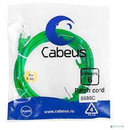Cabeus PC-UTP-RJ45-Cat.6-2m-GN Патч-корд U/UTP, категория 6, 2xRJ45/8p8c, неэкранированный, зеленый, PVC, 2м