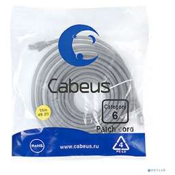 [Cabeus Патч-корды (сетевые, телефонные)] Cabeus PC-UTP-RJ45-Cat.6-15m Патч-корд U/UTP, категория 6, 2xRJ45/8p8c, неэкранированный, серый, PVC, 15м