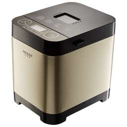 Номинальная мощность 500 Вт. Максимальный вес выпечки 750 г. Объем формы для выпечки 0,7 л. Цвет: золотистый с черным. Форма для выпечки с антипригарным покрытием. Мерный стакан 200 мл. Двухсторонняя мерная ложка: 1 чайная ложка и 1 столовая ложка. LED-дисплей. Сенсорная панель управления. Функция «Отложенный старт» до 13 часов. Функция сохранения тепла «Автоподогрев» 1 час. Энергонезависимая память 10 минут. Выбор веса выпечки: 500г / 750г.