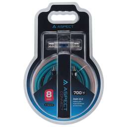 Рекомендуемая мощность усилителя до 800 Вт Силовой кабель плюсовой 8 AWG (8,8 мм2) ультраэластичная изоляция цвета циан в полиэстеровом рукаве (1,5 метра), обжат клеммой "кольцо" 8мм, медные проводники (OFC) - 5 метров Силовой кабель минусовой 8 AWG (8,8 мм2) ультраэластичная изоляция черного цвета, обжат клеммой "кольцо" 8 мм, медные проводники (OFC) - 1 метр Акустический кабель 16 AWG (1,5 мм2) ультраэластичная черная-циан изоляция, медные проводники (OFC) - 15 метров Управляющий кабель (remote) 18 AWG (0,75 мм2) синяя изоляция, медные проводники (OFC) - 5 метров Держатель предохранителя miniANL Латунь, покрытие никель, предохранитель miniANL 60 А в комплекте - 1 шт. Клемма силовая вилка 8 AWG, латунь, покрытие никель, черная - 1 шт., циан - 1 шт. Термоусадка для силового кабеля Для кабеля 8 AWG - 2 шт., циан Громмет (монтажная пластиковая втулка) Для кабеля 8 AWG - 1 шт. Саморез для монтажа держателя предохранителя 4,2 х 13 мм - 2 шт. Ключ шестигранный M3*20 х 50 мм - 1 шт.