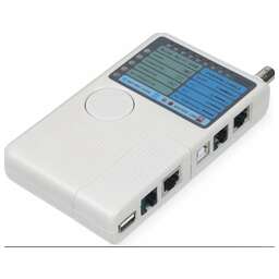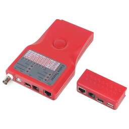 Предназначен для тестирования телефонного кабеля и кабелей на основе витых пар. Содержит в себе два блока и выполняет тестирование телефонного кабеля, локальной сети и соединительных шнуров типа патч-корд (RJ45/11/12, FTP). Тестирует правильность соединения каждого провода в кабеле. Проверяет правильность обжима, обрыв и короткое замыкание. Проверяет целостность экрана для экранированной витой пары. Типы тестируемого кабеля: UTP/STP RJ45, RJ11/12 Область применения: обнаружение ошибок в схеме разводки, замыканий, обрывов, кросс-соединений Определение расстояния: - Генератор тонального сигнала: - ЖК-экран: - Питание: батарейка 9V Krone - 1шт (входит в комплект)
