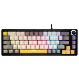 Компактная игровая механическая клавиатура на тихих переключателя SNK White, с прозрачными кейкапами и RGB подсветкой. Модель имеет 3 режима подключения: проводной, беспроводной по радио-каналу 2.4ГГц (с помощью USB-адаптера), а также подключение по Bluetooth. Также клавиатура имеет кнопку-регулятор для управления громкостью и подсветкой.