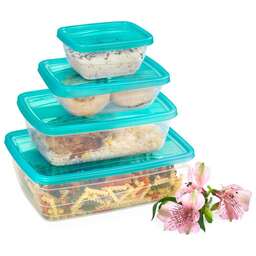 Контейнер пищевой в наборе 4 шт. Изготовлен из высококачественного полипропилена, который не содержит Бисфенол-А. Набор контейнеров предназначен для хранения, разогревания, замораживания и сервировки пищи. Контейнер для еды подходит для использования в холодильнике, в морозильной камере, в посудомоечной машине и СВЧ печи (температурный режим +90 -40 градусов). Пластиковый контейнер прост в использовании, крышки плотно и легко закрываются, так же контейнеры можно ставить друг на друга, а пустые компактно складываются друг в друга, тем самым обеспечивая экономию пространства. Контейнер для СВЧ имеет мерную шкалу, которая точно и просто определит объем хранимых продуктов. Контейнеры для сыпучих продуктов имеют рифленое дно, благодаря которому излишняя влага остаётся в специальных выемках на дне, оставляя продукты сухими. В комплект входит 4шт. контейнеров (размер контейнера ДхШхВ в см): 1,55л (18х18х8,5) - 1шт; 0,9л (14,5х14,5х7,4) -1шт; 0,5л (12х12х6)-1 шт; 0,23л (9,2х9,2х4,8)-1шт.
