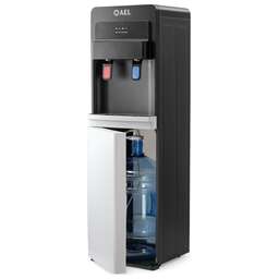 Напольный кулер для воды. Размещение бутылки - верхнее. Подача воды: горячая/холодная. Мощность нагрева: 550 Вт. Мощность охлаждения: 75 Вт. Производительность системы нагрева воды: 5 л/ч. Производительность системы охлаждения воды: 0,7 л/ч. Температура охлаждения воды: 15 °С. Температура нагревания воды: 90 °С, Количество кранов для подачи воды: 2. Имеется шкафчик для посуды. Материал корпуса: пластик. Цвет: серебро/белый