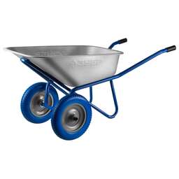 Отличается прочной конструкцией, большой грузоподъемностью, хорошей маневренностью и долговечностью. Модель оснашена стальными подшипниками. Преимущества -Стальной кузов толщиной 0,9мм и объемом 130л для сыпучих грузов имеет цинковое покрытие, обеспечивающее защиту тачки от внешних воздействий., Использование Применяется для транспортировки различных грузов во время проведения строительных работ